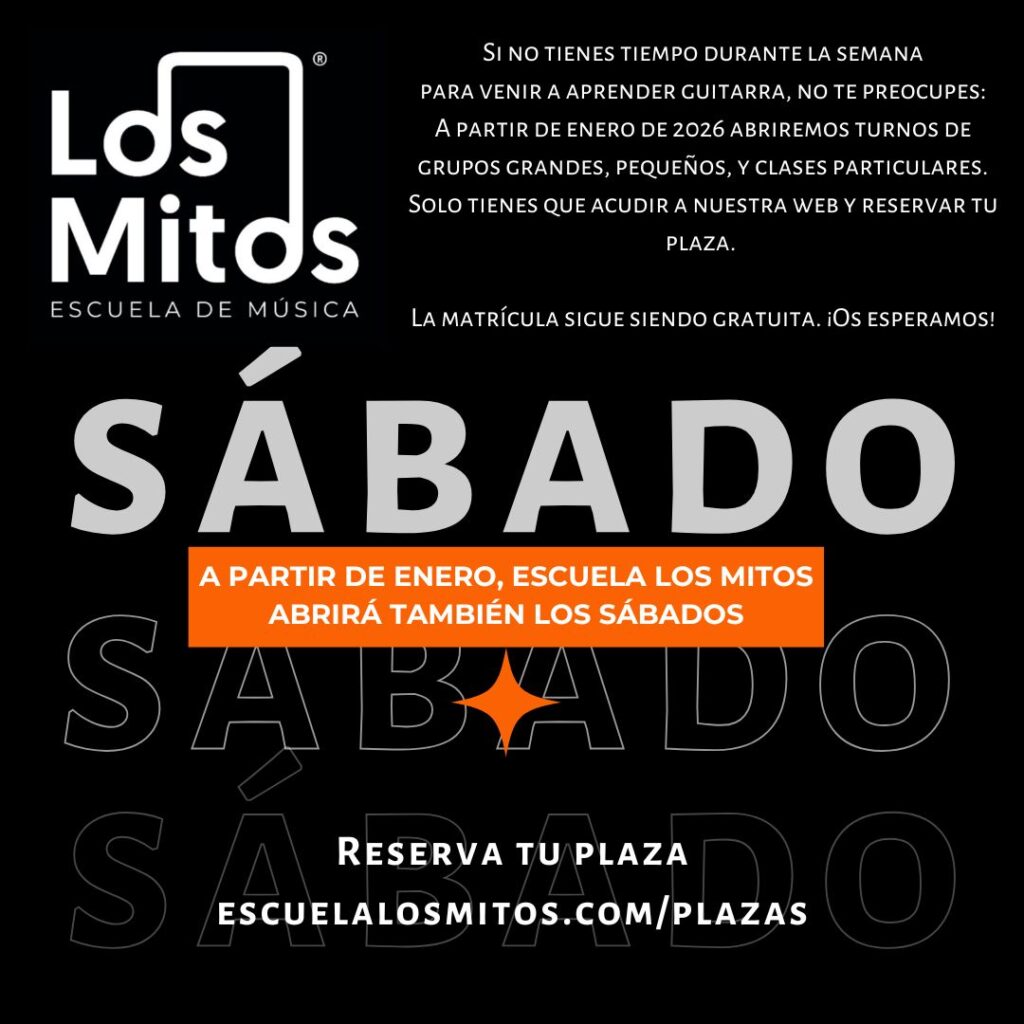 A partir del sábado 17 de enero de 2026, Escuela Los Mitos amplía sus horarios y abrirá también los sábados, estrenando nuevos turnos exclusivos de guitarra.